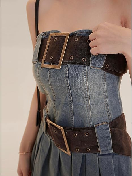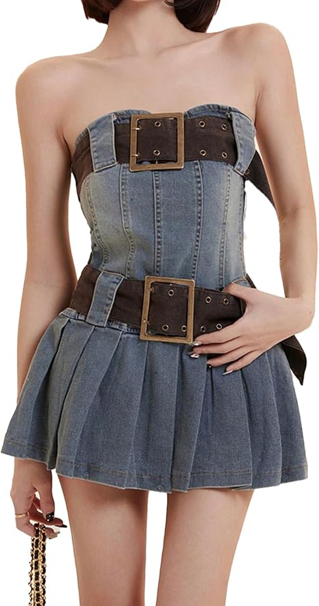 Pleated Denim Tube Top Dress Women Y2k Goth Strapless Sex Mini Dress