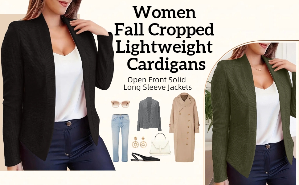Lightweight Cardigans for Women Fall Cropped Open Front Spring Cardigans Long Sleeve Jackets Solid Color Knit Coat